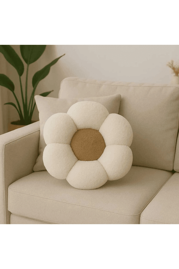 Yumuşak pelüş dokusu, antialerjik ithal kumaş ve papatya figürüyle tasarlanmış dekoratif yastık — ev dekorunuza konfor ve şıklık katmak için ideal bir seçimdir.